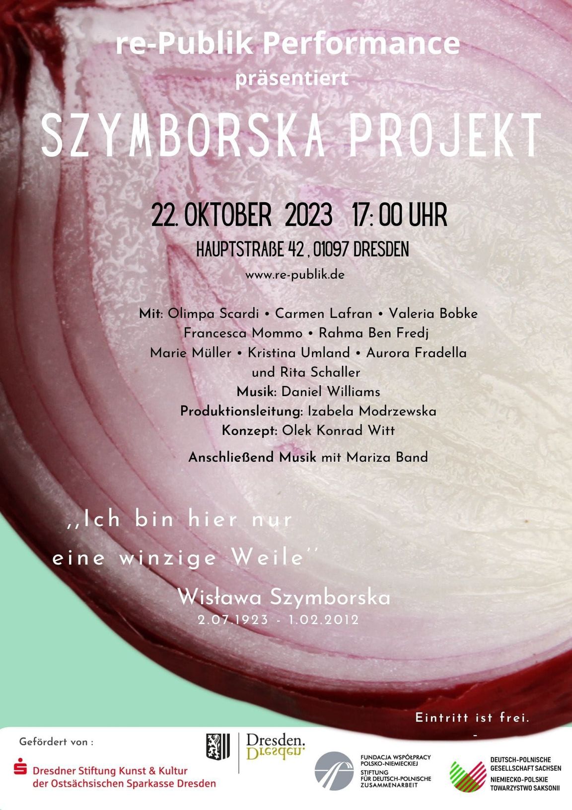 Die Produktion wird von re-Publik Performance und der Deutsch-Polnischen Gesellschaft Sachsen in Zusammenarbeit mit dem Teatr Pantomimy Wroclaw präsentiert. Das Szymborska Projekt wird gefördert und unterstützt von der Stiftung für Deutsch-Polnische Zusammenarbeit, von der Stiftung Kunst und Kultur der Ostsächsischen Sparkasse Dresden, der Landeshauptstadt Dresden, dem Polnischen Institut Berlin Filiale Leipzig und der Fundacją Wisławy Szymborskiej Krakow.