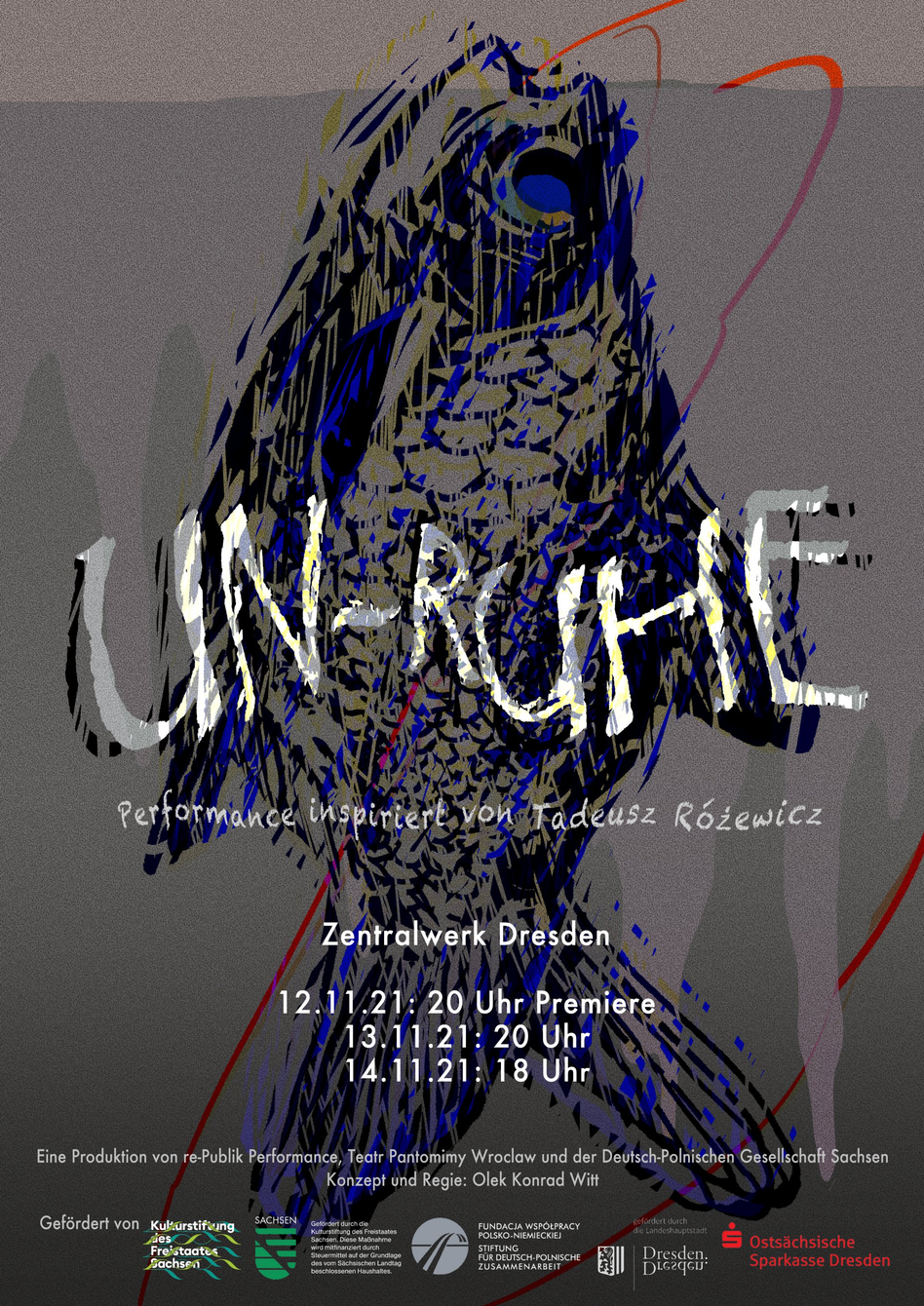 Der diesjährige hundertste Geburtstag des polnischen Dichters Tadeusz Różewicz ist ein Anlass für einen performativen Dialog, der hier in verschiedenen Sprachen des Theaters auf-geführt wird. Ein Team von Künstler*innen aus Polen, Italien, Tunesien, Korea, Tschechien und Deutschland arbeitet gemeinsam über Grenzen hinweg.Un-Ruhe. Nie-Spokój.